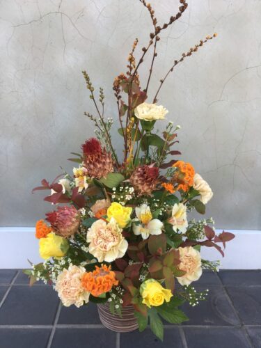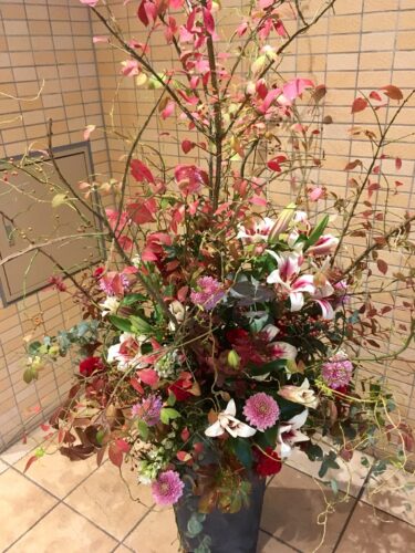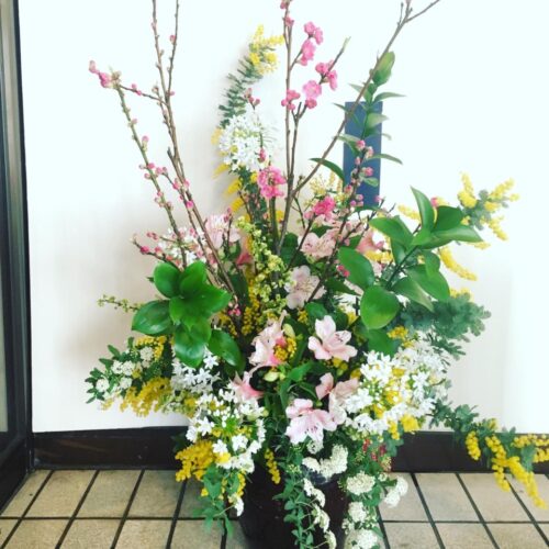 おもてなしの心が伝わる 店舗の入り口の花や、企業の受付の花。
